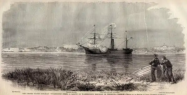 Wyandotte remained in Pensacola Bay, performing valuable observation and communication duty. She transported troops from Fort Barrancas, Florida, to Fort Pickens on 10 February 1861 and regularly patrolled the inner shore of Santa Rosa Island, Florida, to prevent Confederate soldiers from attacking Fort Pickens by land.