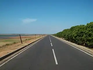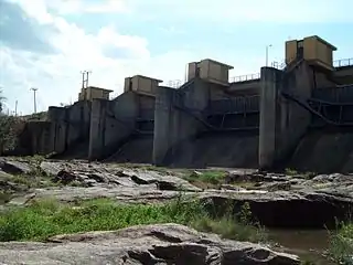 The Udawalawe Dam is a large irrigation dam in Udawalawe, in the Southern Province of Sri Lanka. The dam consists of an embankment section and a gravity section, combining the total dam length to approximately 3.9 km (2.4 mi). The dam is also used for hydroelectric power generation, powering two 2 MW units, commissioned in April 1969.[1]