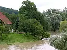 Thur river flooding in Uesslingen-Buch in 2009