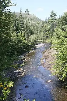 Another trail in the park, The River Trail branches off of the Falls Trail and proceeds north from Falls Brook. It is about 3 kilometres (1.9 mi) in length (return) and requires about one hour to travel. Following along the banks of the North Branch Baddeck River, the trail winds through a climax sugar maple, yellow birch, beech forest at the foot of the river valley's steep slope. Many of the trees in this area are over 100 years old.[8]
