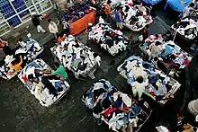 The first ukay-ukay was believed to have been founded in the early 1980s in Baguio. When calamities frequented the Philippines during that year, the Philippine Salvation Army would send secondhand garments and other goods to the refugees and victims as humanitarian assistance to the victims of the calamities.[2][3][4] Soon enough, the shipped goods, upon piling up, were bought in bulk by traders and sold to the public at significantly low prices. They used to market it to the low-income bracket, but following ukay-ukay's increase in popularity, relatively richer customers who seek low-priced branded goods patronize ukay-ukay stores.