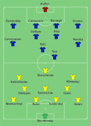 - ↑ "Italy 3-0 Ukraine". BBC Sport. 1 July 2006. Retrieved 15 October 2013.