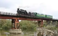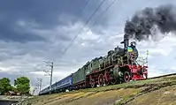 Railways in Ukraine use various gauge types. The broad gauge (1,520 mm), a legacy of Imperial Russian and Soviet times, dominates the landscape, and narrow-gauge railways (750 mm) also exist, but plans are being made to construct, restore or switch to more standard-gauge railways (1,435 mm) for better train connections with the rest of Europe.[17] About half of railways in Ukraine are electrified (some of which have been damaged during the ongoing Russo-Ukrainian War and temporarily switched to diesel trains).[18]