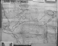 Collective plan of Luhanske. Scale 1: 10000 (Ukrainian: Збірний плян м. Луганського. Маштаб 1:10000, romanized: Zbirnyi plian m. Luhanskoho. Mashtab 1:10000)