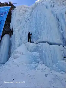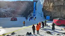 Ice climbing contest at the Ulaan tsutgalan. The frozen state of the waterfall