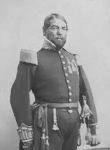 Silva, discontent with the dissolution of the junta and his exclusion from the Presidency, "had the naive illusion that the people of La Paz had anointed him Chief of the entire Nation and he remained resentful, realizing that he had only been used for an emergency".[17] Campero was aware of Silva's dissatisfaction, and in an attempt to pacify him, the Colonel was made Inspector General of the Bolivian Army. In this position, Silva mutinied in Viacha and occupied the Plaza Murillo of La Paz[18] on March 12, 1880. However, by March 18, the mutiny was crushed after the rebels were dispersed in El Alto[19] and several of the leader executed as Silva fled toward Chiclayo.[17][20] The mutiny is said to have resulted in the deaths of two thousand men.[21]