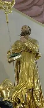 Statue of S. Ulrich in a church in Gora Oljka (Slovenia).