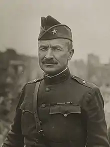 When the United States entered the First World War in April 1917, McAlexander was promoted to colonel in May and sent to France to command the 18th Infantry Regiment[5] of the 1st Division. He commanded that regiment during their early tenure in France when it was being trained in tactics by the French Army. However, he was relieved of command shortly after. It is said that McAlexander was relieved from his command position by General R. Bullard for profanely refusing to believe that the French could teach him anything about war.[6] He was sent, instead, to serve with the Inspector General's staff.