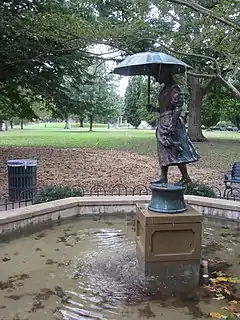 Umbrella Girl, or The Umbrella Girl Fountain, is a 1996 fountain and sculpture in Schiller Park's Grace Highfield Memorial Garden, in Columbus, Ohio's German Village neighborhood, in the United States.[1] The copper fountain and sandstone pool were designed by Joan Wobst and Phil Kientz, respectively.[2]