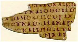 It was written in one column per page, 27 lines per page, with only 6 lines surviving, in uncial letters.[1]