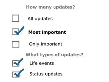 A menu box from an Internet screen showing which preferences are in effect. By using a mouse or graphical pointer, a user can move a cursor over selected terms, and un-check or unclick specific choices, if the software permits it.