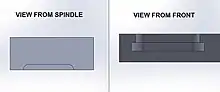 In milling the spindle is where a cutting tool is mounted. In some situations material must be cut from a direction where the feature can not be seen from the perspective of the spindle and requires special tooling to reach behind the visible material.