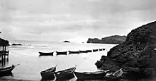 Unga first appeared on the 1880 U.S. Census as the unincorporated village of "Ounga."[6] Of 185 residents, 101 were Aleut, 69 were Creole (Mixed Russian and Native) and 15 were White.[7] The leader of the town was known as the Unga Wizard. It returned in 1890 under the present spelling of Unga and also included the Oakland fishing station, Apollo mine & Squaw Harbor mine. Of 159 residents, 109 were Creole, 48 were White and two were Asian (oddly, no non-Creole Aleuts or Natives appeared).[8] It continued to return on every successive census until 1960. It did not return in 1970. It was designated an Alaskan Native Village Statistical Area (ANVSA) in 1980, but was uninhabited. It has not reported again since.