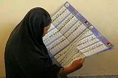 ![]() Afghan woman during parliamentary elections (2005) | ||