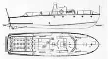 The navy built a number of these small, wooden torpedo retrievers as early as 1924.[17] They were driven by twin 150 horsepower Palmer Marine gasoline engines.[18] Many were declared surplus after World War II and sold to the public for prices as low as $250.[19]