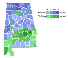 McPhillips won many counties in the southern part of the state, but Parker won the most counties. Sowell endorsed Parker for the runoff.