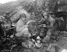 A- and B-rations were only served at bases or established camps in rear areas as they require cooking. C-rations could be eaten hot or cold and required no special preparation or storage, so these could be served almost anywhere.