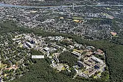 After World War II, the University Hospital Bonn moved to a large area on the Venusberg in the middle of the Kotten Forest, and now only the Forensic Medicine Institute, the Diamorphine Outpatient Clinic, the Preclinical Institutes and the Dental Clinic of the UKB remain in the city outside the Venusberg campus. Since 2001, Bonn University Hospital has been independent with its own supervisory board. It is managed by a five-member board of directors. Prof. Dr. med. Dr. h.c. mult. Wolfgang Holzgreve, MBA, has been chairman of the board since 2012.[1]