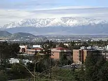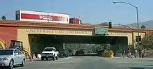 The 215/60 freeway's University Avenue underpass separates the city and the university. Painted on the support walls of the underpass is the Gluck Gateway Mural, a 190-foot (58 m) mural of Riverside and UCR history from the days before the Citrus Experiment Station through 2000, the year the mural was painted.[11]
