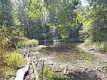 Part of Wild Goose Woods is another old growth forest, and was once a White elm forest, with some of the stumps still present from the large trees that were wiped out by Dutch Elm Disease in the late 1960's.[38] When the large elms died, small Freeman's maples that covered the forest floor got their chance and grew to the present forest around the boardwalk.[38] In the late summer, fall and early winter, this area can be fairly dry, but in the late winter and spring, it is completely underwater[38]