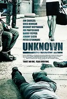 Unknown is a 2006 American mystery thriller film directed by Simon Brand and written by Matthew Waynee. It stars Jim Caviezel, Greg Kinnear, Joe Pantoliano, Barry Pepper, and Jeremy Sisto as a group of men kidnapped and locked in a factory with no memory of how they arrived there.