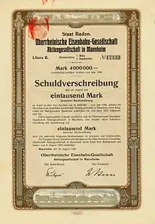 - ↑ "Nachrichten" [News]. Amtsblatt der Königlich Preußischen und Großherzoglich Hessischen Eisenbahndirektion in Mainz (in German). Eisenbahndirektion Mainz (39): 297. 5 August 1911.