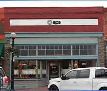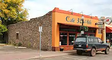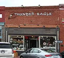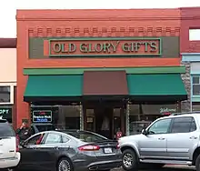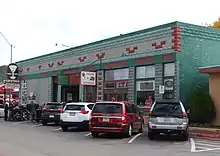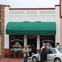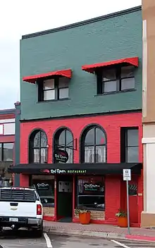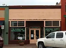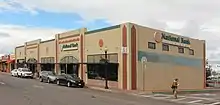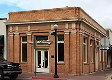 1907 | Only Art Deco style building in Historic District[1] | Originally five smaller buildings combined and covered with stucco; housed grocery, hardware, department stores and bakery[2] |