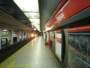 Uruguay is a station on Line B of the Buenos Aires Underground.[1][2][3] It is located at the intersection of Avenida Corrientes and Calle Uruguay, near to the Courthouse and in the middle of the city's main theatre district. The station was opened on 22 July 1931 as part of the extension of the line from Callao to Carlos Pellegrini.[4]