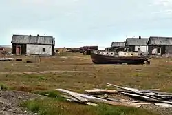 From the early 1990s, subsidies were reduced and in 1994 the last supply ship brought provisions and fuel to the settlement. Afterwards, cargo and mail were carried by helicopter.[7] People began to leave Ushakovskoye and in 1997 it was decided to resettle the inhabitants at Mys Shmidta. The last resident of Ushakovskoye, Vasilina Alpaun, was killed by a polar bear on October 13, 2003 not far from her home.[12]