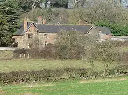 The hall originated as a large manor house for the Done family, who were the hereditary wardens of Delamere Forest, and is now a farmhouse. It has a medieval core but most of it dates from the early 17th century. It was partly refaced around 1700 and again in the early 18th century for Sir John Crewe. The hall is built in ashlar red sandstone. Part of the hall has an orange brick façade with red sandstone dressings. It has a Welsh slate roof and brick chimneys.[1] A barn, walls and gatepiers surrounding the hall are listed at Grade II.[2][3][4][5]