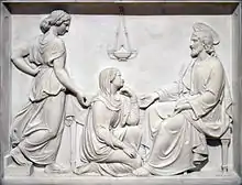 Veith fell into financial difficulties and died suddenly in 1853, but Levý was able to survive as a free-lance sculptor and soon received a commission from the Sisters of Mercy Hospital near Petřín Hill in Prague. Ultimately, however, he decided that he could not compete in the local sculpture market (which was dominated by the brothers Josef and Emanuel Max), so he applied for and received a stipendium to study in Rome.[2] This proved to be his most fruitful period and his contacts there led to several large commissions in Vienna.