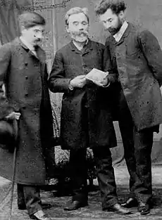 By then, Urechia had also begun collaborating with the younger anti-Junimist and later Symbolist poet Alexandru Macedonski. In 1881, Minister Urechia granted Macedonski the Bene-Merenti medal 1st class, even though, Călinescu argues, the poet had been a civil servant for no more than 18 months.[28] A year later, he appointed Macedonski to the post of Historical Monuments Inspector.[28] Also in 1882, he accepted Macedonski's offer to become president of a society formed around the magazine Literatorul .[9][29] In 1883, following Macedonski's attacks on Junimist author Mihai Eminescu, later recognized as national poet, the irreverent exposure of Eminescu's mental illness and the widespread condemnation which ensued, Literatorul went out of print.[30][31] It resurfaced sporadically after that date, notably in 1885, as Revista Literară, and continued to receive contributions from Urechia, Anghel Demetriescu, Th. M. Stoenescu and Bonifaciu Florescu, but was eventually turned by Macedonski into a voice for the local Symbolist movement.[32][33]