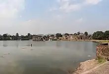 Munja dug several tanks and erected many temples.[27] He commissioned several buildings in his capital Dhara.[23] He is believed to have excavated the Munja-sagara (Munj Sagar) lake in Dhara and the Munja-talao tank in Mandu. Munja also built temples and ghats (embankments) in Dharmapuri, Maheshvara, Omkara-Mandhata and Ujjayani. Munjapura, a former town in present-day Gujarat, was named after him.[28]