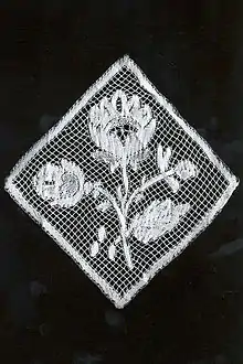 Valenciennes lace is a type of bobbin lace which originated in Valenciennes, in the Nord département of France, and flourished from about 1705 to 1780.[1][2][3] Later production moved to Belgium, in and around Ypres.[3][4][5] The industry continued onto the 19th century on a diminished scale.[3] By the 19th century Valenciennes lace could be made by machine.[1]