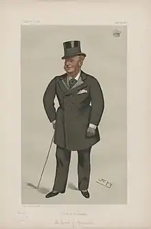 He held this office until 1885[15] and again briefly in Gladstone's third administration between February[16] and July 1886.[17] Apart from his political career he was also Lord-Lieutenant of Kerry between 1866 and 1905.[18] He was Honorary Colonel of the Kerry Militia (from 1881 designated as the 4th (Militia) Battalion of the Royal Munster Fusiliers) from 1866 until he retired in December 1902 and was succeeded by his son.[19][20]
