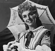 Masterson joined the D'Oyly Carte Opera Company as a principal soprano in 1964.[1] After a performance as Mabel in The Pirates of Penzance, The Guardian commented, "It is Valerie Masterson's Mabel that makes one revise ideas on D'Oyly Carte standards. It is a long time since the company had so strong a soprano lead." Other critics agreed: The Times criticised D'Oyly Carte vocal standards in 1968 but called Masterson and Kenneth Sandford "shining exceptions."[8] She remained with D'Oyly Carte for five years, where her major roles were Mabel; Josephine in H.M.S. Pinafore; Phyllis in Iolanthe; Lady Psyche, and subsequently the title role, in Princess Ida; Yum-Yum in The Mikado; Elsie Maynard in The Yeomen of the Guard; and Casilda in The Gondoliers. She appeared as Yum-Yum in the company's 1966 film version of The Mikado.[9] She left the company in 1969 but often returned for guest appearances.[1]