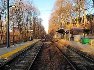 Valley Road station is a light rail station in Milton, Massachusetts. It serves the MBTA's Ashmont–Mattapan High-Speed Line, a branch of the Red Line. The station is located off Eliot Street near Valley Road and consists of two side platforms that serve the lines's two tracks. Valley Road is the only station on the Line that is not accessible.