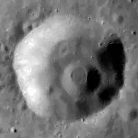 Van Maanen is an eroded lunar impact crater on the far side of the Moon. It lies to the east of the crater Kidinnu, and southeast of Tesla and H. G. Wells. Since this crater was formed, it has been heavily battered by subsequent impacts to the point where it is little more than a depression in the surface surrounded by an irregular rim. The rim edge is heavily worn and poorly defined, with smaller craters lying along the sides. These in turn have become worn and rounded.