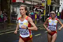 ![]() María Elena Espeso and Vanessa Veiga (right) in the 2012 Summer Olympics marathon | |