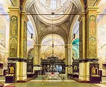 Theophanes the Confessor first mentions the name Varna, as the city came to be known, within the context of the Slavic conquest of the Balkans in the 6th to 7th centuries. The name could be of Varangian origin, as Varangians had been crossing the Black Sea for many years, reaching Constantinople in the early Middle Ages. In Swedish, värn means 'shield, defense' – hence Varna could mean 'defended, fortified place'. Vikings invaded the settlement during the Middle Ages.[6] The name may be older than that; perhaps it derives from the Proto-Indo-European root *u̯er- 'to flow, wet, water, river'[7][8] (cf. Varuna), or from the Proto-Slavic root varn 'black', or from Iranian bar or var 'camp, fortress' (see also Etymological list of provinces of Bulgaria).