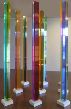 Vasa is best known for his sculptures made from colored pieces of acrylic.[4] Untitled from 1975, in the collection of the Honolulu Museum of Art, demonstrates the effect of these minimalist sculptures. The Denver Art Museum, the Hammer Museum (Los Angeles), the Hirshhorn Museum and Sculpture Garden (Washington, D.C.), the Honolulu Museum of Art, The Phillips Collection (Washington, D.C.), the Royal Museums of Fine Arts of Belgium (Brussels), the San Diego Museum of Art, the San Francisco Museum of Modern Art, and the Wilhelm Lehmbruck Museum (Duisburg, Germany) are among the public collections holding work by Vasa Mihich.[2]