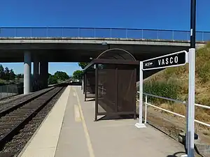 Vasco Road station (signed as Vasco) is an ACE station on Vasco Road in eastern Livermore, California. The station mainly serves the workers of Lawrence Livermore National Laboratory, Sandia National Laboratory and the surrounding industrial and office parks in eastern Livermore in addition to commuters from Livermore headed to job centers in the Silicon Valley to the southwest.