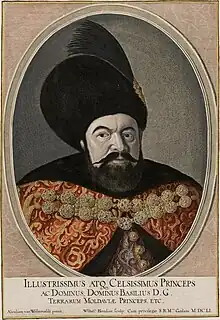 Lupu Coci, known as Vasile Lupu (Romanian pronunciation: [vaˈsile ˈlupu]; 1595–1661), was a Voivode of Moldavia of Albanian origin between 1634 and 1653. Lupu had secured the Moldavian throne in 1634 after a series of complicated intrigues and managed to hold it for twenty years. Vasile was a capable administrator and a brilliant financier and was soon almost the richest man in the Christian East. His gifts to Ottoman leaders kept him on good terms with the Ottoman authorities.