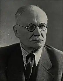 After the war he was appointed minister of finance in the restored Czechoslovakia and served in this role until 1947.[2] Šrobár also founded the Catholic Freedom Party in 1946, which later merged into the Czechoslovak National Front, and published an autobiography, Z môjho života (From My Life) in the same year. He subsequently served as minister for the unification of laws.[2] He continued in this role in the Communist government of Klement Gottwald that came to power in the Czechoslovak coup d'etat of 1948. On 6 December 1950, Šrobár died in Olomouc in Moravia and was initially buried there. His body was later reinterred in St Martin's Cemetery in Bratislava.[1]