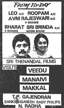 - ↑ "Veedu Manaivi Makkal". The Indian Express. 15 January 1988. p. 4. Retrieved 23 April 2018.