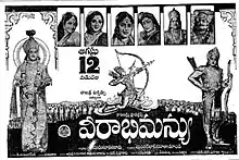 Veerabhimanyu is a 1965 Indian Telugu-language Hindu mythological film produced by Sunderlal Nahta and Doondi and directed by V. Madhusudhana Rao. It stars N. T. Rama Rao, Shobhan Babu and Kanchana, with music composed by K. V. Mahadevan. The film was recorded as a Super Hit at the box office. It was simultaneously filmed in Tamil as Veera Abhimanyu, with slightly different cast.[1] The film had its climax scene shot in Eastmancolor. The film is considered a breakthrough for Shobhan Babu.[2]