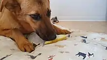 Studies have demonstrated that a plant-based diet can be just as edible and palatable as animal-based diets for dogs.[4] Odiferous ingredients that enhance the smell of the food increase palatability, and examples include nutritional yeast, vegetable oil, nori (seaweed), as well as spirulina.[4] Additionally, certain ingredients can be combined to create a palatable flavour. An example is the synergistic combination of hydrolyzed vegetable protein and xylose, as well as a combination of substances derived from glucose, garlic powder, and nature-identical, non-meat chicken flavouring.[15] The temperature of the food can also be a factor, as warmer food has an increased palatability.[4]