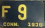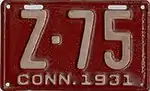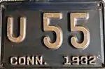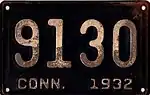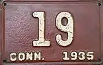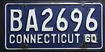 - ↑ "Old Connecticut License Plates". LeatherLicensePlates.com. Retrieved June 10, 2017.