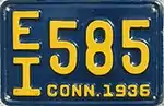 1936 | Embossed yellow serial on navy blue plate; "CONN. 1936" at bottom | 1234 | Issued in blocks by branch office | |