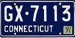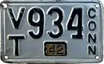 1937–41 | Embossed black serial on silver plate; vertical "CONN" at right; tab box at bottom center | 1234 | 1 to 9999 | Validated for 1937, 1940 and 1943 with yellow tabs; for 1938, 1941 and 1946 with silver tabs; for 1939, 1942, 1945 and 1947 with light green tabs; and for 1944 with white tabs. In the A/1 123 serial format, the letter progressed before the small number (A/2 through Z/2, then A/3 through Z/3, etc.).[4] |